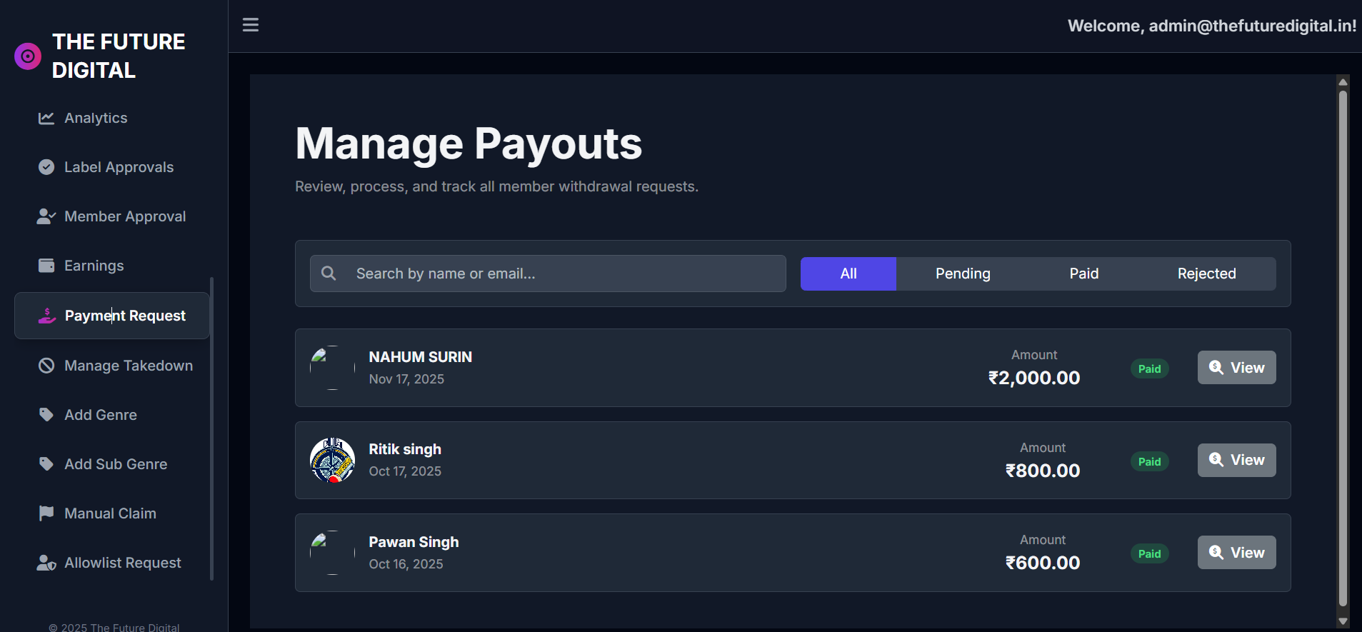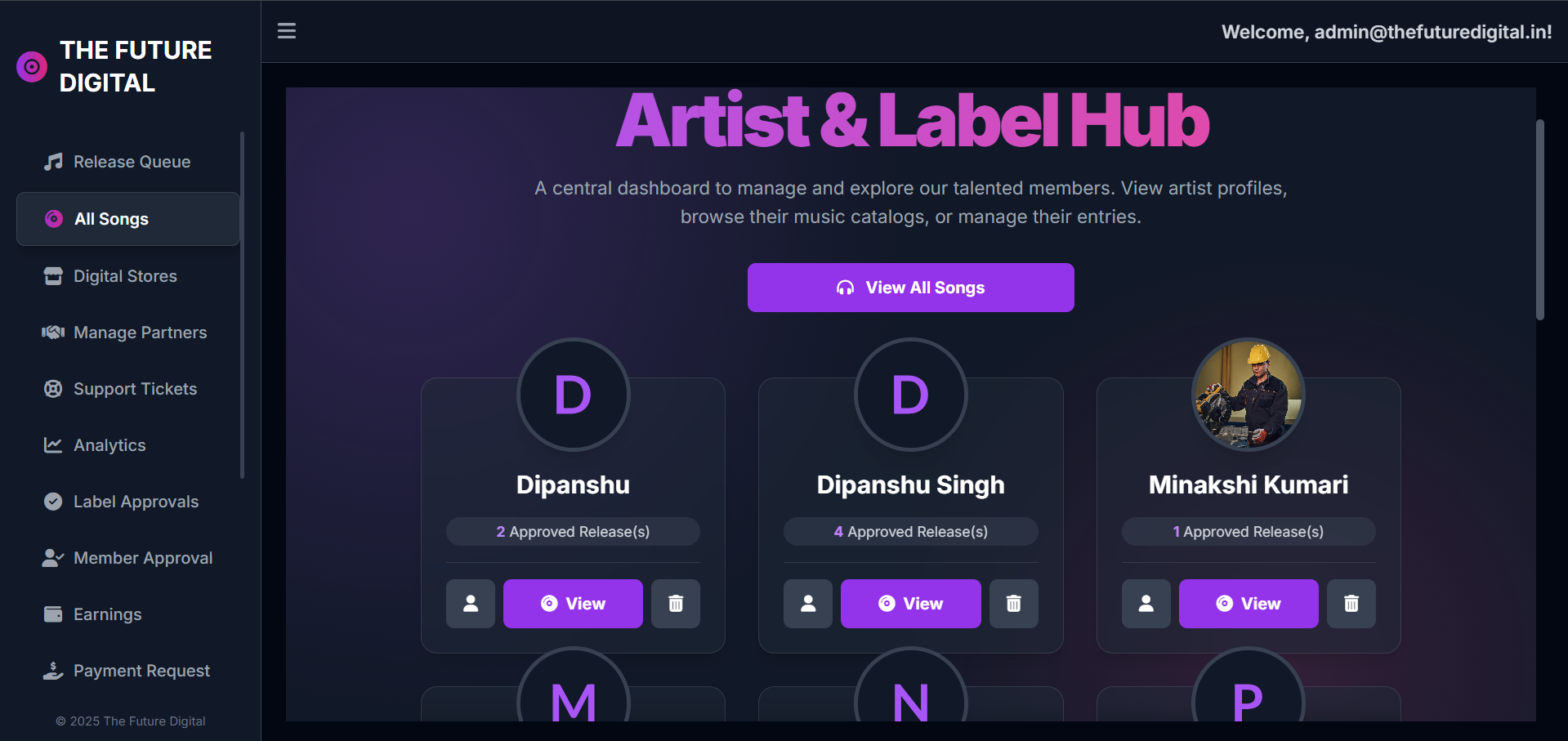 This project is a complete Music Distribution and Management Platform designed for music industries handling millions of members and their song releases. Artists can easily upload their tracks in .wav format, along with posters and all required metadata such as title, genre, lyrics, composer details, and more. The system ensures a seamless publishing process, giving creators full control over their releases. The platform integrates with major streaming services like YouTube, Spotify, Apple Music, and other global DSPs, allowing artists to track their real-time streams, earnings, and performance across all platforms. Every stream is recorded and reflected in the dashboard with accurate earning calculations. A powerful Admin Panel enables complete management of the system�from handling labels, artist accounts, and release approvals to monitoring streams, generating reports, managing payouts, and processing payment requests. Admins can send automated emails, approve or decline submissions, and control every aspect of platform operations. Features like allowlisting, user verification, payment history, and financial summaries make the system highly efficient and transparent. This project provides an all-in-one solution for music distribution, revenue tracking, and artist-label management, ensuring smooth operations for both creators and administrators.